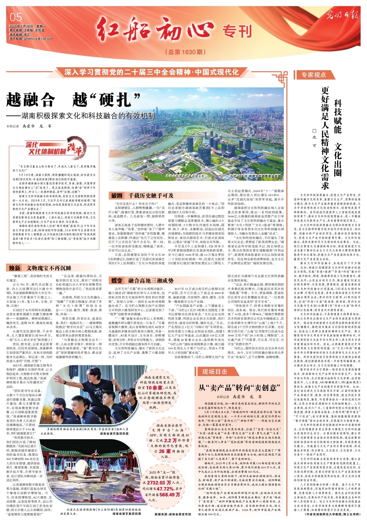 探索文化和科技融合的有效机制,是深化文化体制机制改革的一大方向。2024年3月,习近平总书记在湖南考察时强调:“探索文化和科技融合的有效机制,加快发展新型文化业态,形成更多新的文化产业增长点。”