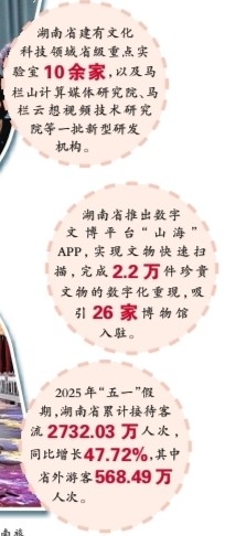 当前,湖南积极探索文化和科技融合的有效机制,推动文化资源优势转化为发展盛势。三湘大地上,传统文化焕新升级,文化新质生产力加速锻造,文化产业活力涌动、实力强劲。